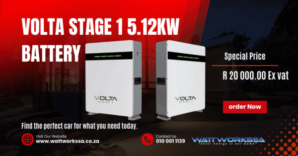 “Volta stage 1 5.12KW Li-Ion battery”, While stocks last!